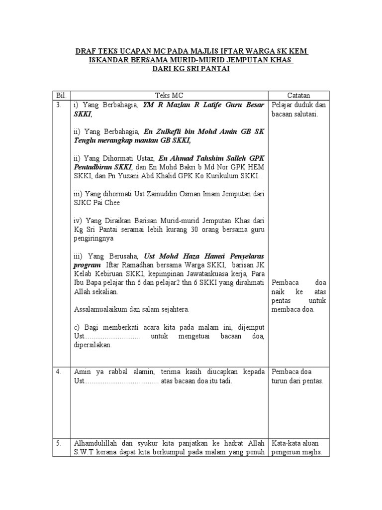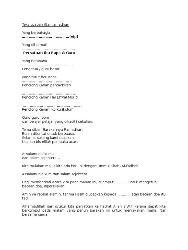 Teks Ucapan Mc Majlis Iftar 1 Pdf